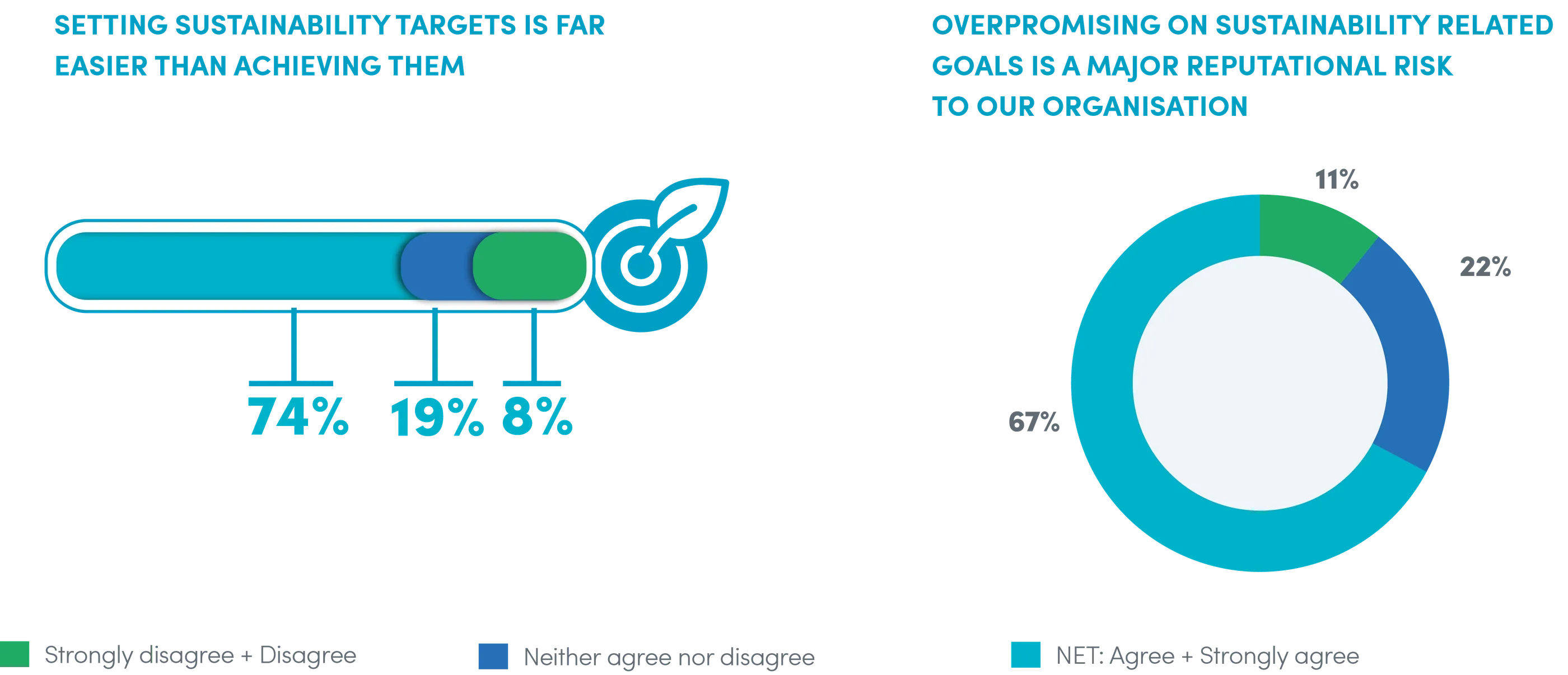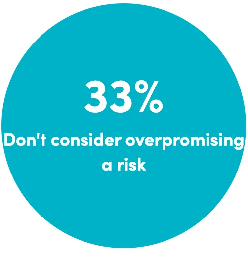 Companies that do not transition to sustainable operations face increased risk, both operationally and reputationally – and yet ESG strategies and execution are not being aligned in many organisations. There are consequences of not meeting goals – particularly with an ever-increasing number of firms making their ESG commitments public in the form of annual sustainability-related reporting, signing public pledges, or through direct B2B or B2C marketing activity. Many Business Leaders are acutely aware of the reputational risks of making public commitments but, concerningly, one third (33%) do not identify that overpromising on sustainability-related goals is a major reputational risk for their organisation.