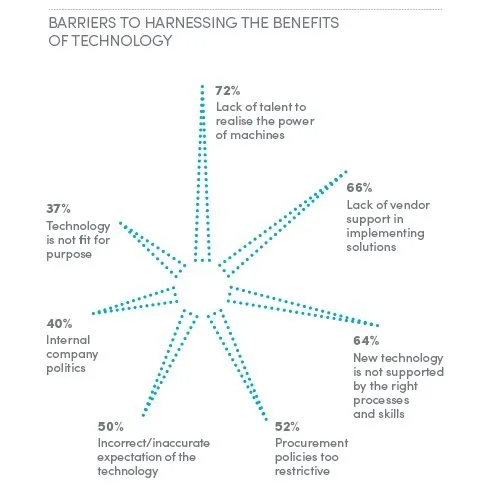 Nearly three-quarters (72%) of procurement leaders point to lack of talent as the greatest barrier to realising the power of machines.