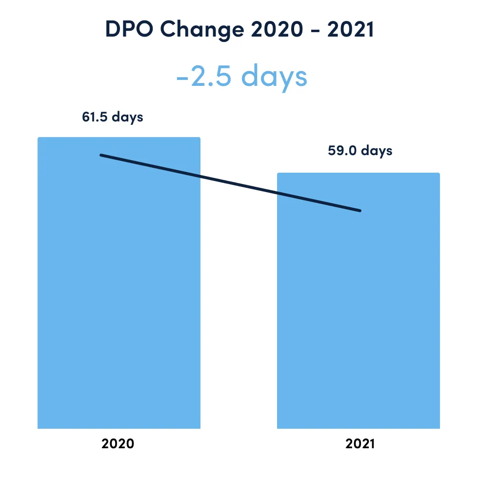 This CCC reduction results from a combined improvement of both DPO and DSO. DPO increased 4 days in 2021, building on a 4-day improvement in 2020. Similarly, DSO improved by 3 days, to 59 days, more than reversing the deterioration experienced in 2020, when customers terms extended by 2 days, driven by a strong revenue growth, which allows businesses to impose more restrictive conditions to their customers.