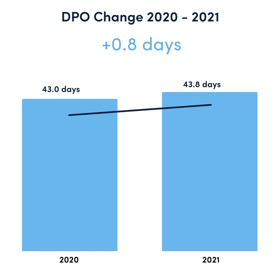 The 1.6 days DPO rise in 2021 adds up to the 4.3-day increase in 2020 and shows an overall willingness from a number of suppliers to extend the lenient terms granted in the peak of the pandemic. In other instances, it can also be a factor of delayed payments linked to delayed deliveries in the context of the shortages that have plagued global supply chains in 2021 (and which are still recurring in 2022). Either reason, at any event, are by nature transitory and, depending on how the supply landscape evolves, these will fade out and a DPO decrease is likely in the cards within many sectors, unless properly addressed with a structural approach to supplier negotiations.